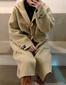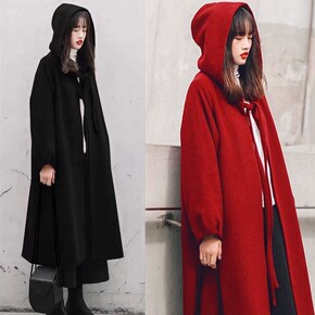秋冬韩版新款毛呢外套女加厚大码宽松连帽呢子大衣外套...