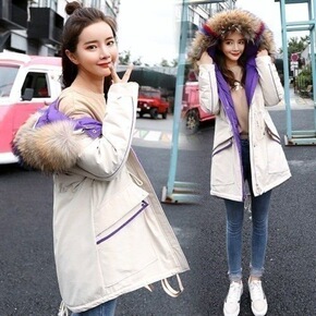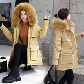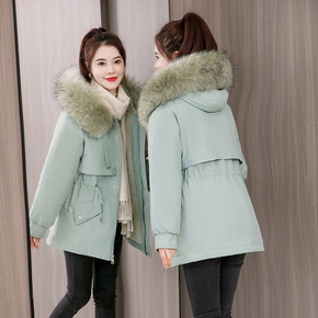 实拍2021新款羽绒服女韩版羊羔毛棉衣派克服收腰显...