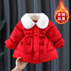 女宝宝冬装红色棉服2021新款女童夹棉棉袄拜年服婴...