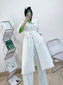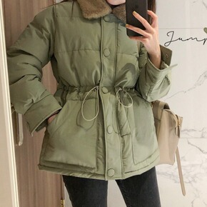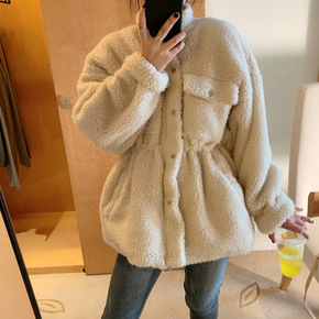 韩国秋冬款韩国东大门网红白色仿羊羔毛抽绳收腰棉衣刺...