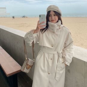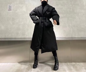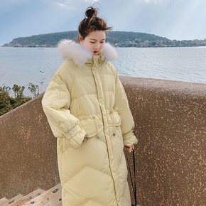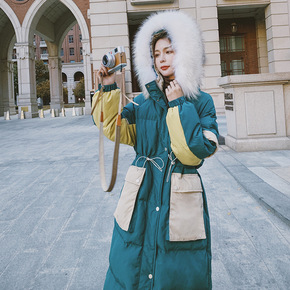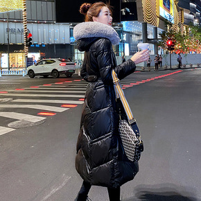 实拍2021年新款冬季韩版港风中长款宽松收腰加厚棉...