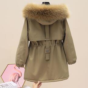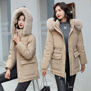 中长款大码派克服女2021冬季新款欧码收腰棉衣女羽...