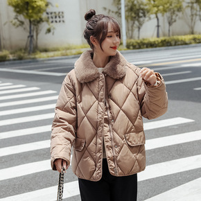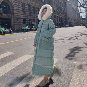 实拍菱格羽绒棉袄女2020年冬新款韩版宽松长款过膝...