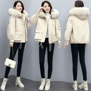 2021新款冬装女短款小个子收腰羽绒棉服女韩版工装...