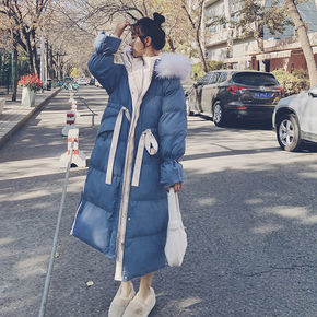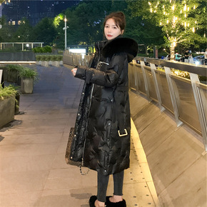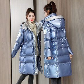 免洗亮面羽绒棉服女过膝2021年新款冬季宽松收腰减...