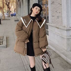 棉服女2021年新款中长款韩版宽松休闲收腰可爱棉衣...