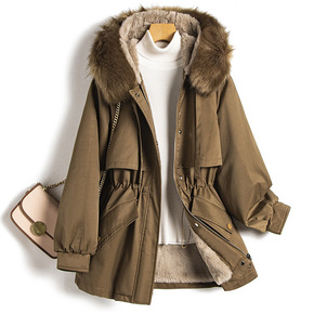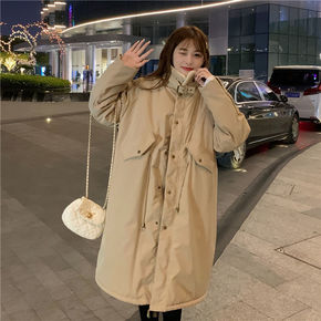 冬季2021新款韩版宽松加绒加厚中长款收腰小个子棉...