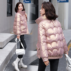 羽绒棉服女短款韩版收腰小个子棉袄2021新款亮面棉...