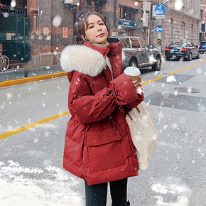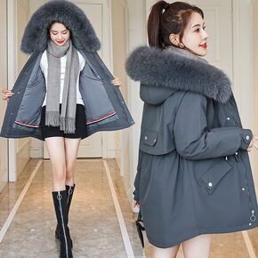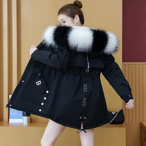实拍连帽大毛领羽绒棉棉服女中长款2021年冬季新款...