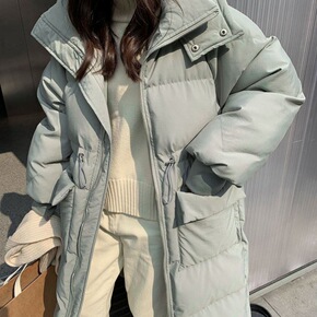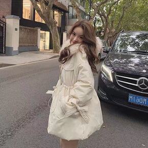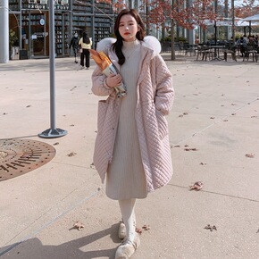 羽绒棉服女中长款2021年冬季新款学生过膝收腰棉袄...