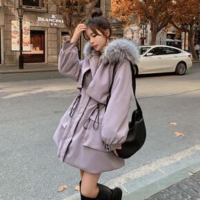 2021新款大码收腰加厚工装派克棉服女冬加绒加厚韩...