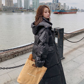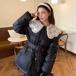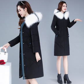 羽绒棉服女中长款黑色棉衣2021新款韩版宽松收腰连...