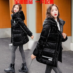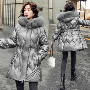 亮面羽绒棉服女中长款2021冬装新款气质显瘦免洗棉...