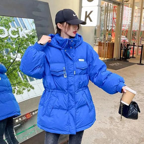 克莱因蓝色羽绒棉服女中长款欧洲站冬季新款连帽加厚收...