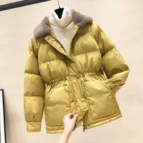 兔绒毛棉服女2021年冬季新加厚内胆收腰短款小个子...