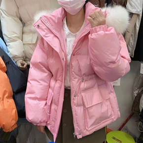 小个子糖果色软妹羽绒棉服女冬季大毛领中长款收腰加厚...