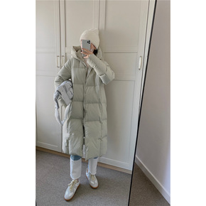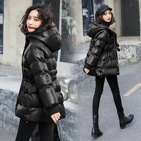 羽绒服女中长款2020年新款时尚加厚收腰小个子亮面...