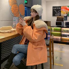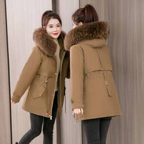 加绒棉服女短款2021韩版收腰显瘦大毛领冬装风衣派...