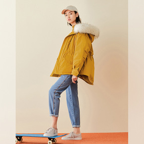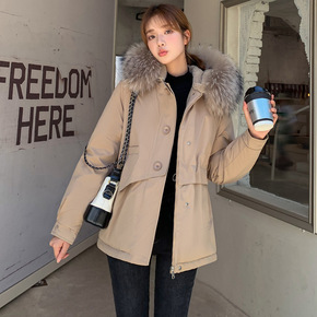 反季大毛领羽绒服女短款派克2020新款收腰宽松加厚...