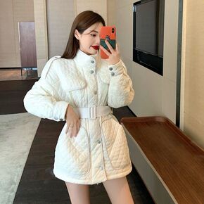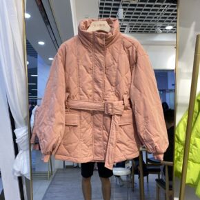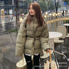系带收腰棉服女宽松韩版秋冬季2021新款设计感高领...