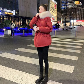派克服女收腰设计冬季装加厚保暖棉袄毛领棉衣外套中长...