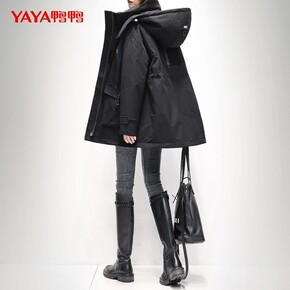 鸭鸭2021年冬季新款羽绒服女中长款连帽时尚收腰显...