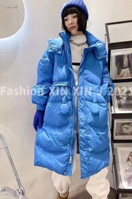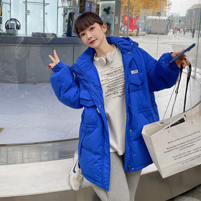 2021冬季新款克莱因蓝羽绒服女时尚收腰中长款蓝色...