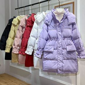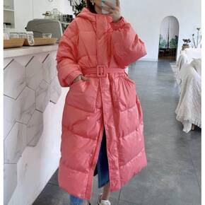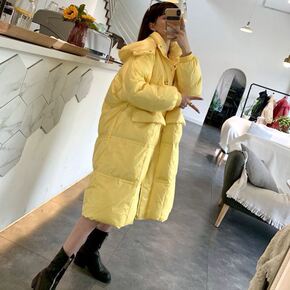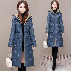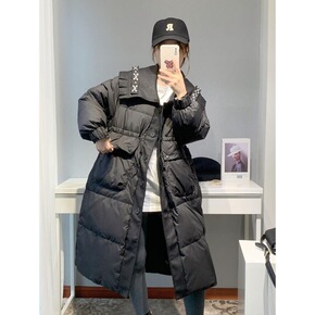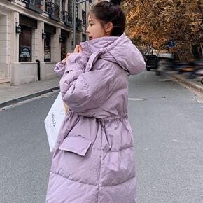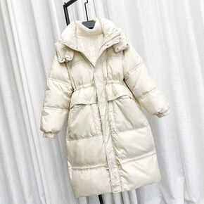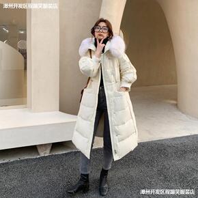 韩国东大门中长款过膝羽绒服女亮面宽松收腰加厚白鸭绒...