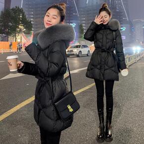 羽绒服女2021年冬季新款中长款连帽收腰显瘦时尚气...