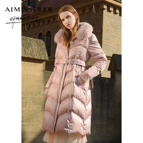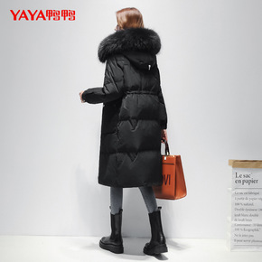 鸭鸭女装2021冬季新款羽绒服中长款貉子毛领韩版收...
