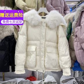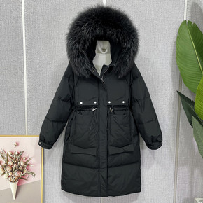 白鸭绒大毛领羽绒服2021年新款冬装韩版收腰黑色女...