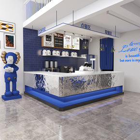 简约现代不锈钢餐饮烧烤奶茶店弧形吧台前台理发店收银...