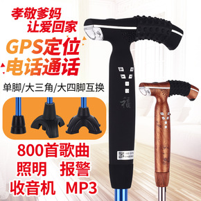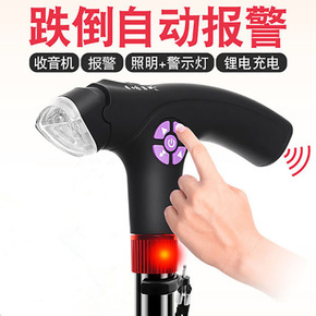铝合金伸缩手杖老年人防滑拐棍四脚智能带灯收音机多功...