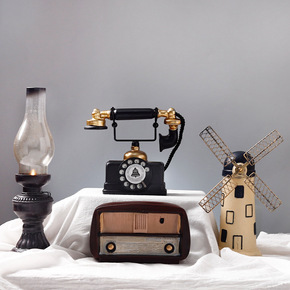 复古老式电话机模型壁挂墙上装饰创意网红奶茶店酒吧墙...