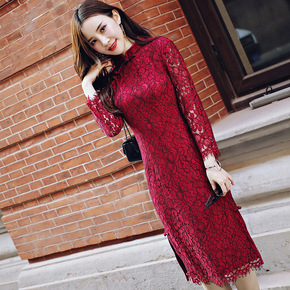 【普雅希】秋冬新款复古盘扣改良蕾丝流须长款越南奥黛...
