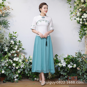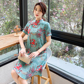 批发改良短旗袍春夏季唐装连衣裙表演服装低开衩新款L...