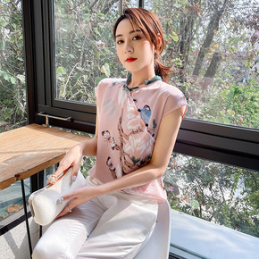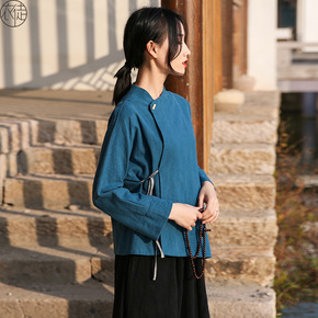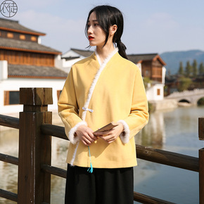 蕴诗坊厂家自营民族风中式印花撞色盘扣民国学生改良旗...