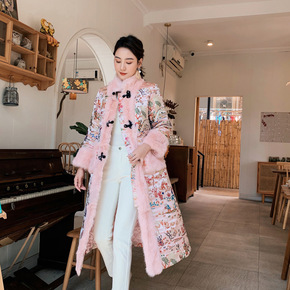 2021秋冬新款中国风复古盘扣改良旗袍水貂毛长袖气...