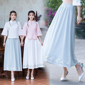 工厂供应2019新款成人女装复古国学民族风连衣裙复...