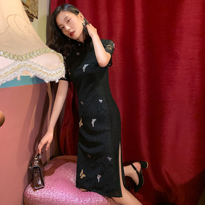 2021新款高档夏季改良旗袍绣花 少女中长款新式雪...