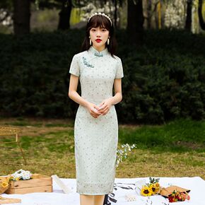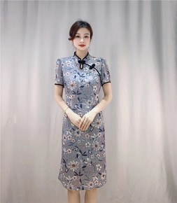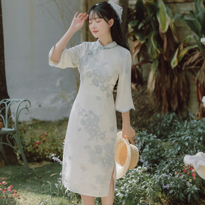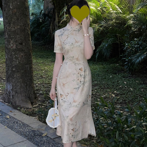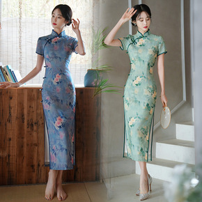 春季旗袍短袖立领修身长款旗袍 复古小清新改良版旗袍...