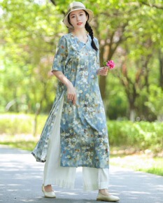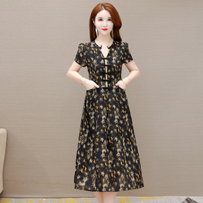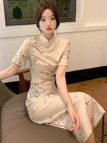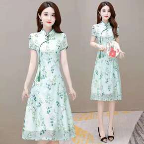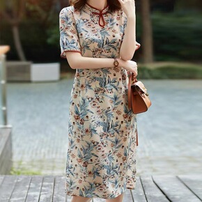 2022年夏季汉派韩版女时尚气质通勤印花改良版中长...