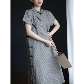 改良旗袍连衣裙女2022夏季新款复古文艺民国风棉麻...