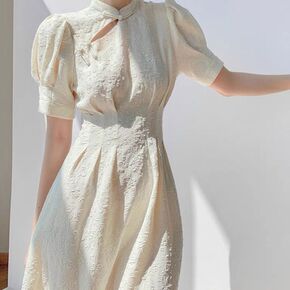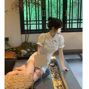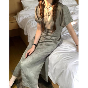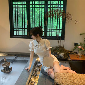 国风改良版旗袍连衣裙女装夏季2022新款法式泡泡袖...