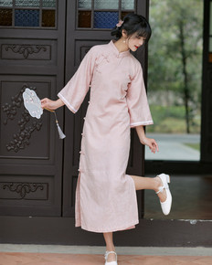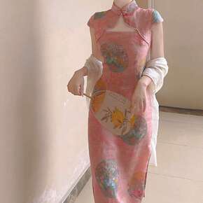 改良款新款旗袍古典粉色性感镂空夏季改良旗袍2022...