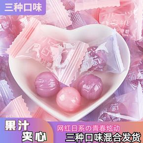 网红糖果批发白桃味葡萄味水果糖多种混合混装夹心硬糖...