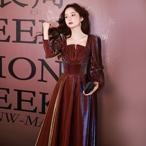 年会晚礼服2022秋冬新款气质修身主持人艺考仙气宴...