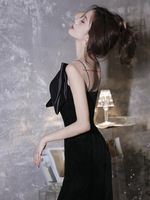 小礼服女2022夏季新款黑色长款气质名媛宴会连衣裙...