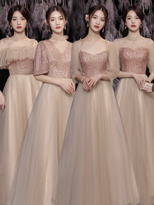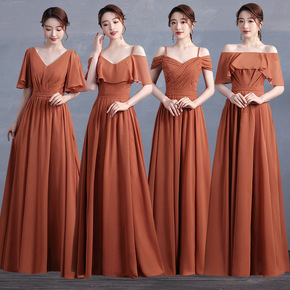 粉色伴娘服冬季2022新款秋冬姐妹团闺蜜长裙晚礼服...