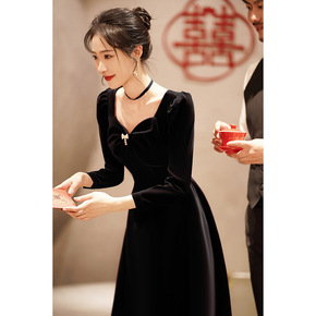 年会晚礼服2022新款黑色丝绒赫本风宴会气质春季平...
